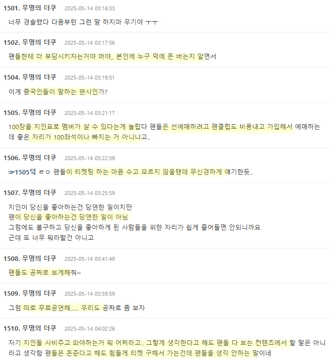 본인 콘서트 티켓 구매때문에 서운함이 많은듯 하죠?