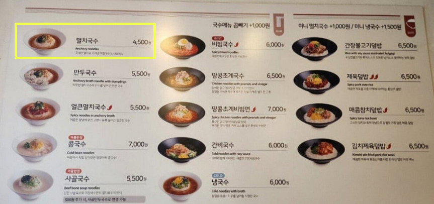 정작 본인 체인 미정국수는 제일 저렴한 멸치국수가