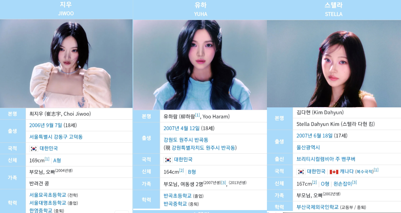 다만 그외 한국인 멤버들은 대부분 초졸 중퇴..