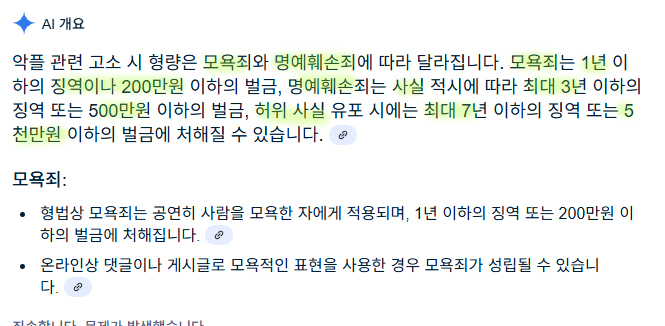 모욕죄 / 명예훼손죄로 나뉘는것 같으며