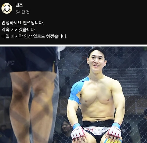 마지막 영상을 업로드 하겠다는게 밴쯔의 글이에요.