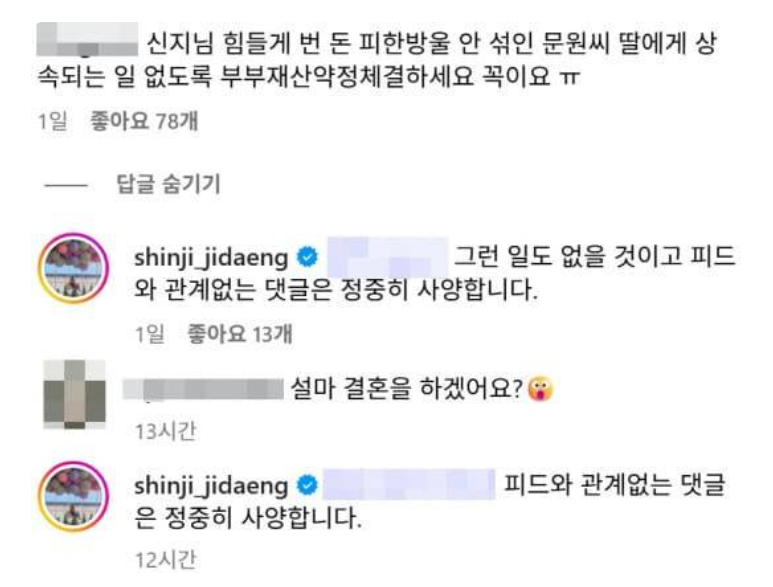 피드와 관계없는 댓글 사양한다"라고 대답..