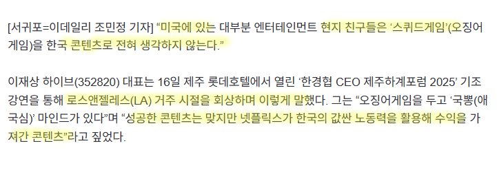 오징어게임 잘된걸 두고 국뽕이라 후려치기???