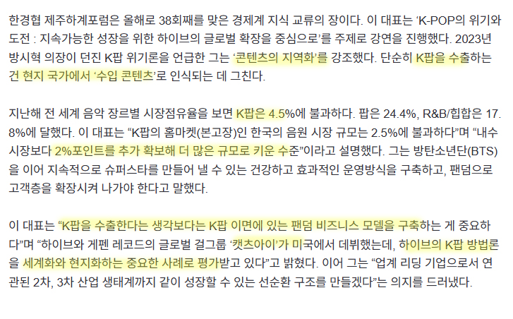 라는것이 하이브 이재상 대표의 연설인데..