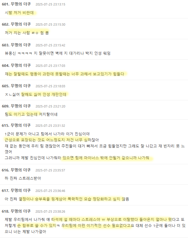 너무 과한건 벌금을 세우든가 라인업에 불이익을 주던가 해야