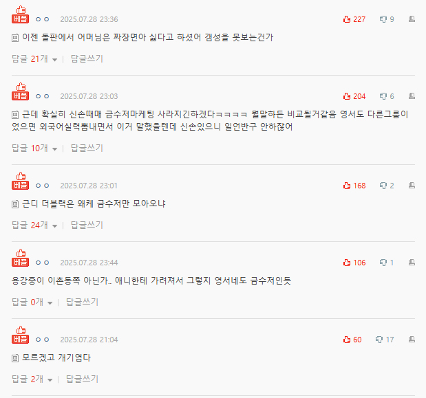 | 브라이언 살해협박 악플 이유? "미국놈이 고급집" 김남길 팬이 긁혔나 (0) | 2025.07.30 |