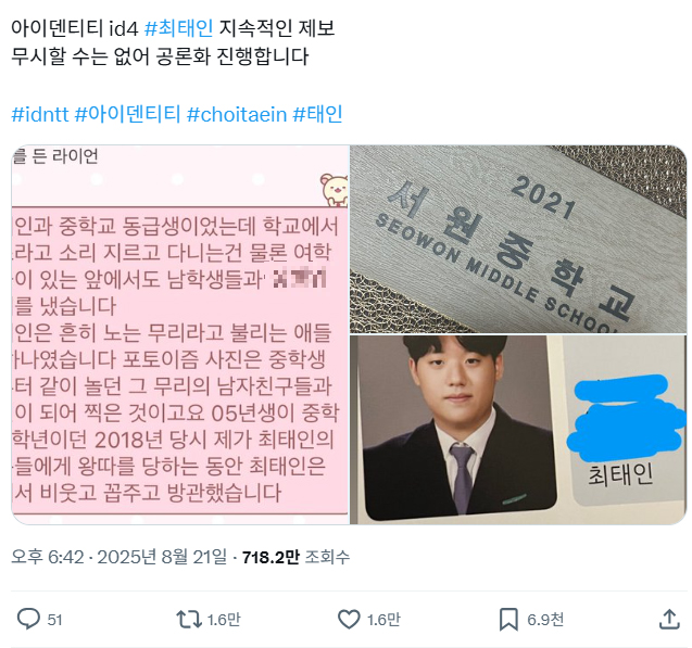 해서 아이덴티티 최태인 역시, 폭로자의 말을
