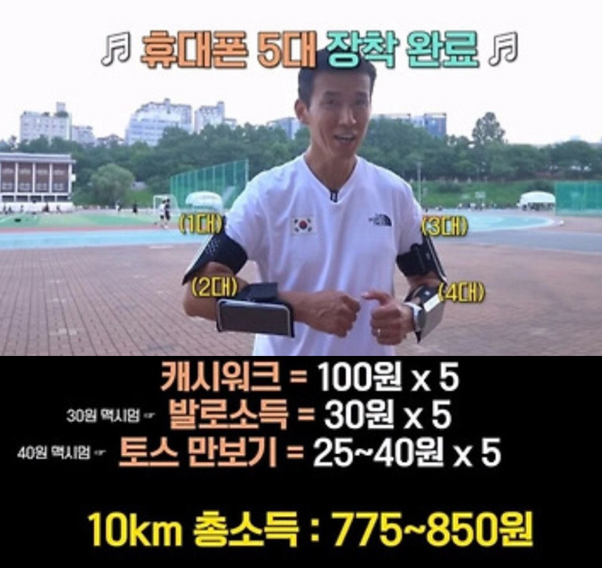 만보기 3개 깔고 핸드폰 5개 들고 뛰니