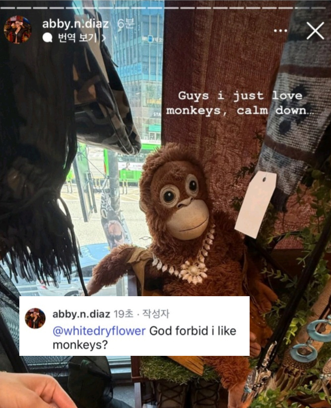 논란이 커지자 애비는 "내가 원숭이 좋아서
