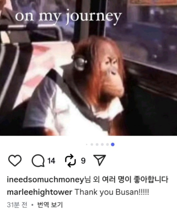 땡큐부산!이라는 글과 함게 원숭이사진..
