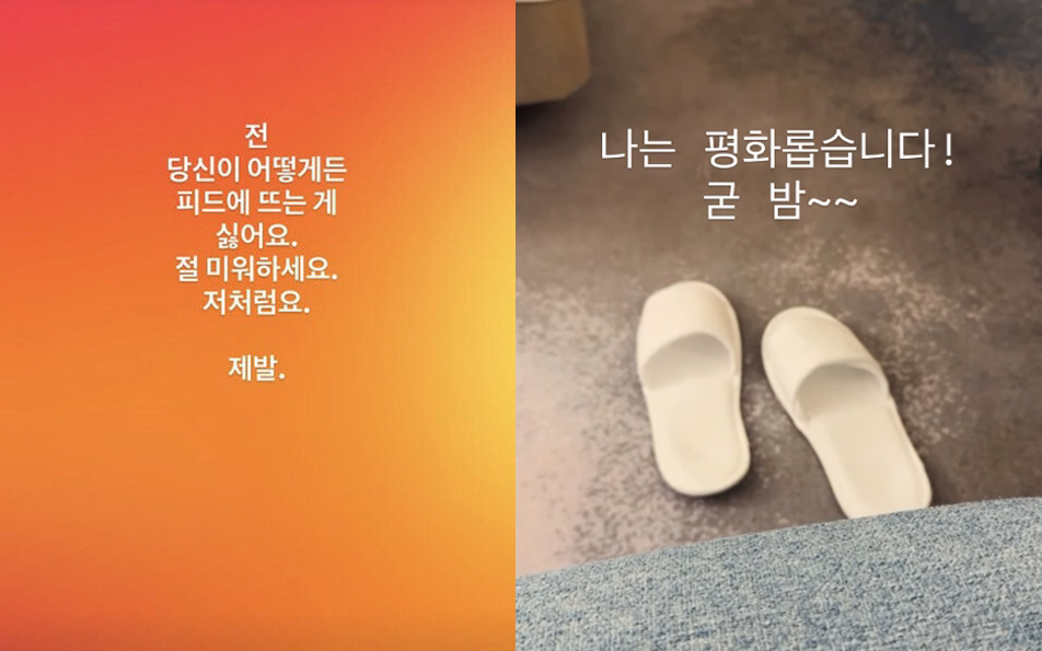 내 피드에 뜨는게 싫어요. 절 미워하세요. 저처럼요"