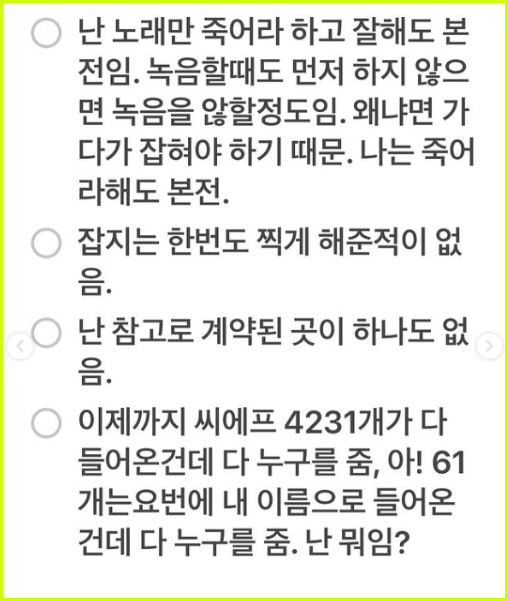 박봄 말인즉슨, 씨에프가 4천개 넘게 들어왔는데