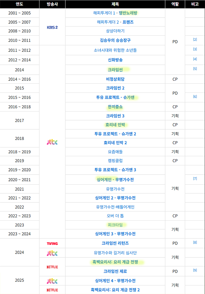 알고보니 예전부터 히트작이 많은 피디셨더라구요.