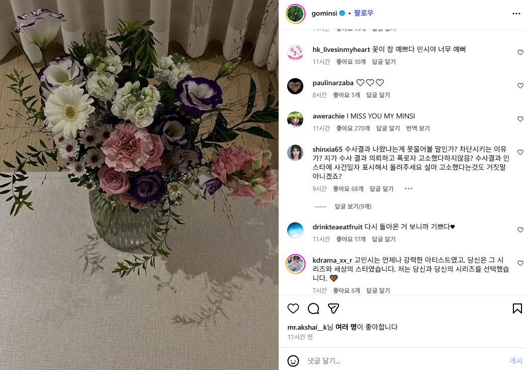 그러한 와중에 고민시가 꽃 사진을 올리고..