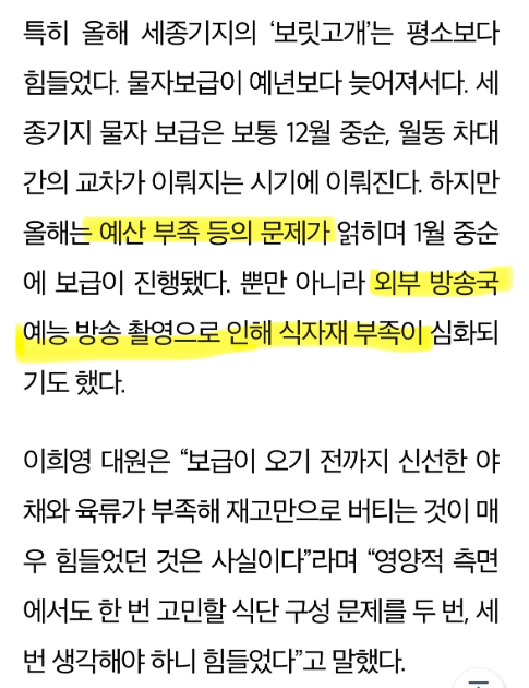 "기지는 매년 12월에 1년에 한번만 보급"