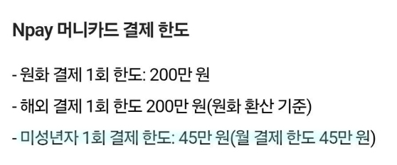 쨌거나 네이버페이는 미성년자 한도 금액이