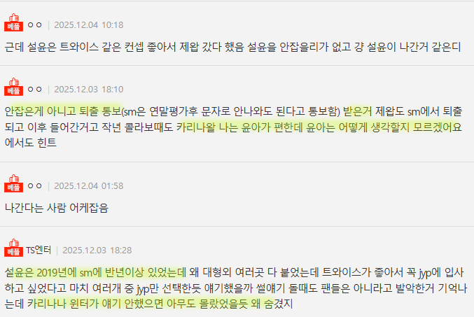 또 댓글을 보자면 설윤이 그당시 sm에서