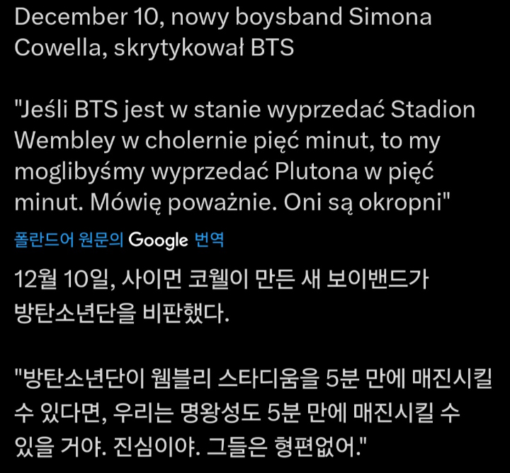 디스했다는 점이 방탄 팬들은 기분나쁠수도 있는데