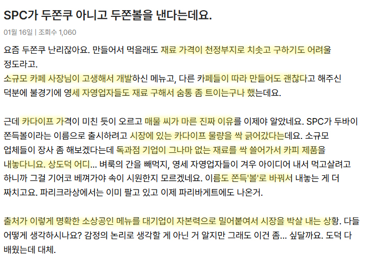 SPC 두쫀쿠 논란이유.