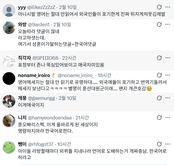 한국 팬들은 댓글창 한국어로 클린해서 좋고 ㅋㅋ
