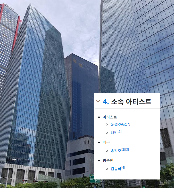 지드래곤의 소속사로 유명하고, 그 외에도