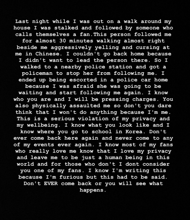 여전히 스토커 사생팬으로 고통받는다는게.. 참 충격적이네요.
