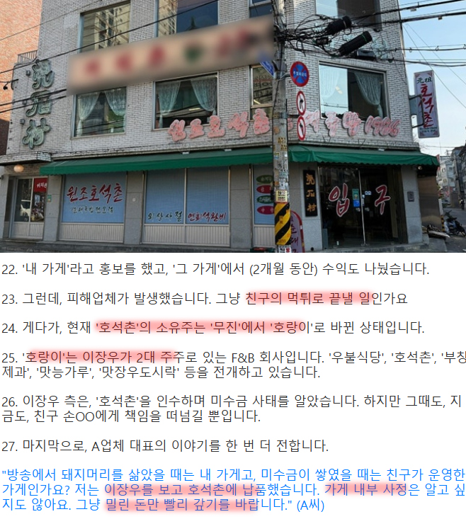 이장우 순댓국 미정산 사건은 과연 누구 잘못일까요?