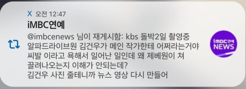 "김건우가 kbs 메인 작가에게 씨발 욕을 했다"