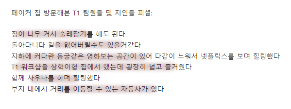 페이커 집.. 넓기도 넓고, 없는게 없을 정도라고 함 ㄷㄷ
