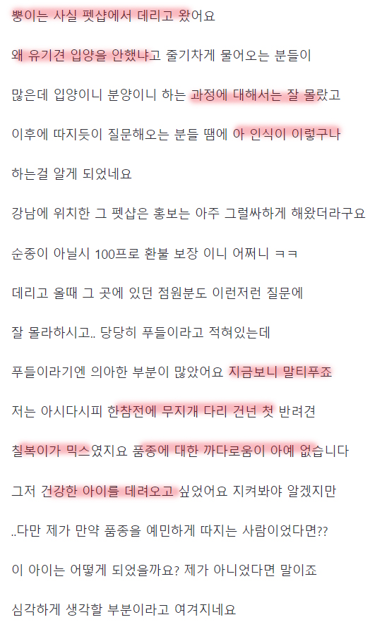 키우고싶었던거다. 펫샵에 대한 인식도 잘 몰랐다"라고.