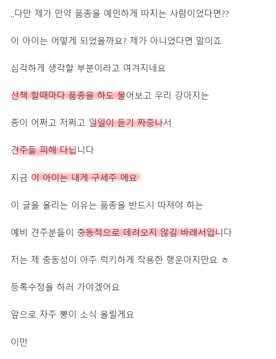 "나는 품종견이라서 데려온거도 아니고