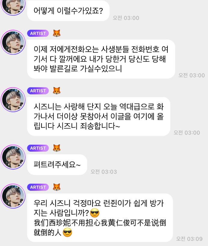 이제는 사생 전화오면 전화번호 다 까버리겠다는